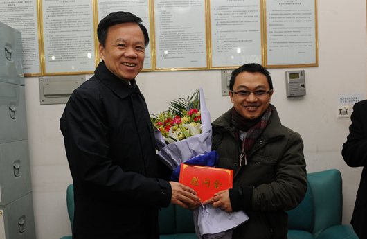 贵大新闻网讯(党委统战部)根据学校机构调整和人员变动情况,2013年底,我校校、院两级党员领导干部与党外人士联谊交友的名单都进行了新一轮调整。新的联谊交友名单确定后,校党委书记姚小泉带头落实,为学校广大党员领导干部坚持和落实好这一制度做出了表率。 1月21日,姚小泉在校党委副书记任钢建和相关职能部门负责人的陪同下,专程上门看望了他的党外朋友马克俭院士,并代表学校向马克俭院士致以诚挚的新年问候