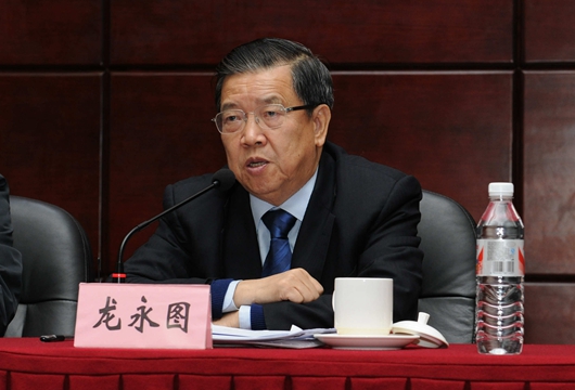商务部原副部长龙永图高度评价创新联盟和战略研究院的成立。他对贵阳市、贵州大学给予自己为家乡、母校作贡献的机会表示感谢。他说,成立贵州大学贵阳创新驱动发展战略研究院很重要,是党委、政府科学决策、民主决策的重要趋势。这种以创新驱动发展,开展前瞻性、全球性创新驱动发展战略研究的做法在全国尚属首例。他希望贵州大学抓住机会、把握机遇,使贵大的教学科研与贵阳全面融合,并以此为平台,加强对外开放与协作。他指出,成立科技创新联盟、贵阳研究院就是“马踏飞燕”,是在贵阳这片有着后发优势的土地上谋划新生机,就像老马身上踏着的燕子,整合要素,具有新意,展现出科技创新驱动经济实现绿色转型、创新转型双赢齐飞的景象。