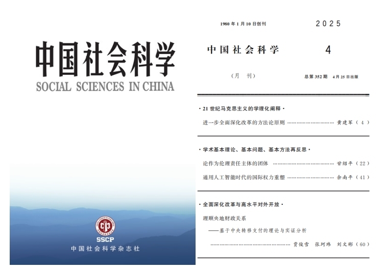贵大新闻网讯 近日,我校哲学学院甘绍平教授在《中国社会科学》2025年第4期发表题为《论作为伦理责任主体的团体》的文章,实现我校专家学者在文科领域顶刊的突破。