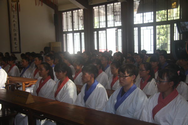 9月28日下午,贵州大学中国文化书院副教授廖峰博士在贵州大学“道德讲堂”总堂——中国文化书院勉学堂,为我校师生作了题为“古典教育与现代生活”的专题讲座。此次专题讲座是在学校学生举行先师孔子诞辰纪念日“拜师、敬师”活动之后,所举行的贵州大学道德讲堂系列讲座之一,围绕中国优秀传统文化与师风师德建设、社会道德建设等核心问题展开。
