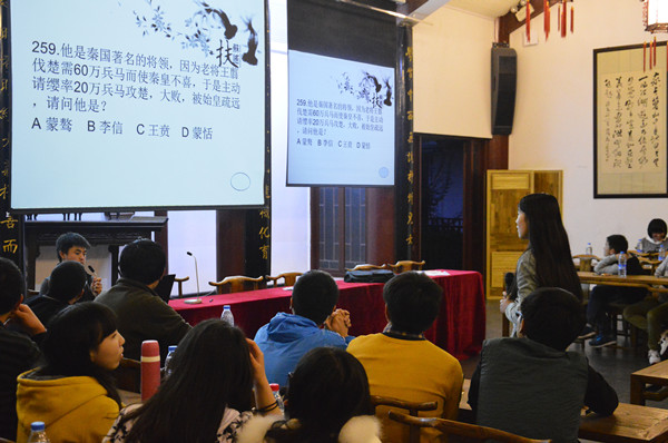 (新闻部 刘正玮)2015年4月24日19时,“贵大版一站到底”暨第二届历史文化知识挑战赛于贵州大学中国文化书院举行,此次活动由历史文化协会主办,纪念历史文化协会两周年诞辰的同时丰富在校学生们的课余生活。