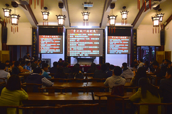 (新闻部 刘正玮)2015年4月24日19时,“贵大版一站到底”暨第二届历史文化知识挑战赛于贵州大学中国文化书院举行,此次活动由历史文化协会主办,纪念历史文化协会两周年诞辰的同时丰富在校学生们的课余生活。