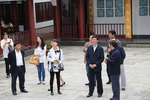 2015年5月12日上午,扬州大学党委副书记、副校长叶柏森及副校级调研员雍自成,率宣传部、学工部等部门负责人一行八人,在贵州大学党委副书记骆长江陪同下参观贵州大学中国文化书院。中国文化书院常务副院长张清教授、副院长刘振宁教授、副院长罗同兵副教授陪同客人参观孔子铜像、勉学堂、励道楼、涵远读书楼、仁文厅等处,并详细介绍了书院相关情况。