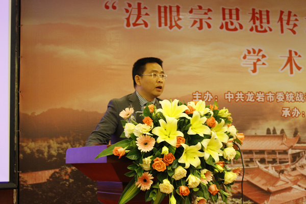 他在发言中对法眼宗的历史源流、传承发展与“中绝”并作了阐述;着重指出虚云大师应本湛青持和尚之请接续法眼宗法脉的必要性与可能性及其传承法脉的特点;认为福建龙岩长汀是近现代法眼宗“中兴”的发源地或“中兴”祖庭;对本湛和尚至慧瑛法师及其系下弟子光胜等之禅法与事功进行个案研究,凸显了法眼宗在闽西传播发展的兴盛局面;强调为适应法眼宗“球状”发展态势的实际情况,应在研究方法论上重视“近现代”视域;探索认为法眼宗的本质特征与福建地方文化的独特相融性是法眼宗能够在闽西兴盛的要因,并指出要重视开掘法眼宗思想资源为地方文化建设服务;提出了龙岩乃至福建思想文化建设如何由边缘走向中心的三大建设性意见,等等。