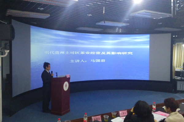 贵州大学中国文化书院马国君教授应邀参加了研讨会,做了题为“明代贵州土司区茶业经营及其影响研究”的报告。马国君教授认为,有明一代,贵州土司区优质茶叶品种繁多。按功用类型可分为“贡茶”、“西番茶”等,此类茶业成了构建土司区与明王朝,以及土司区与和谐边疆诸类关系的重要媒介,深受明朝重视。马教授还认为,贵州土司区的茶业亦为黔省古代山地高效农业的重要组成部分,探索其规律,发掘其经营本土知识,对于黔省生态文明建设,省政府提出的“守住发展与生态两条底线”有着积极意义。