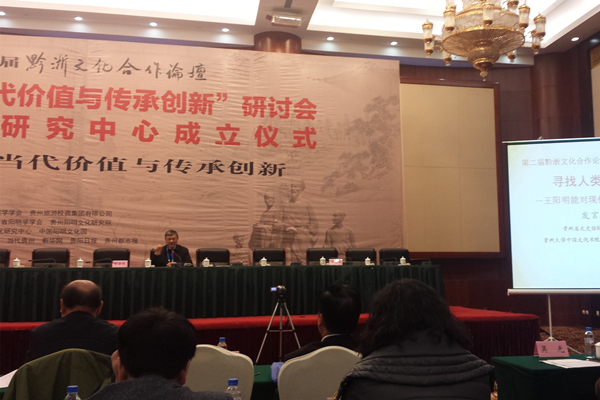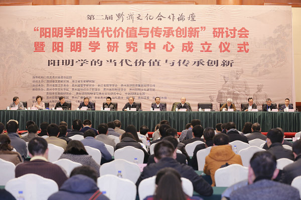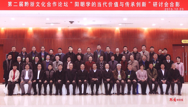 2015年12月23—24日,第二届黔浙文化合作论坛“阳明学的当代价值与传承创新”研讨会在贵州省贵阳市贵州饭店举行。论坛研讨会由中共贵州省委统战部指导,贵州省文史研究馆、浙江省文史研究馆共同主办,贵州省浙江总商会、贵州省儒学研究会、浙江省儒学学会、贵州旅游投资集团有限公司共同承办,贵州省阳明学会、贵州阳明文化研究院等机构协办。贵州省文史研究馆党组书记、副馆长王德玉主持开幕式。