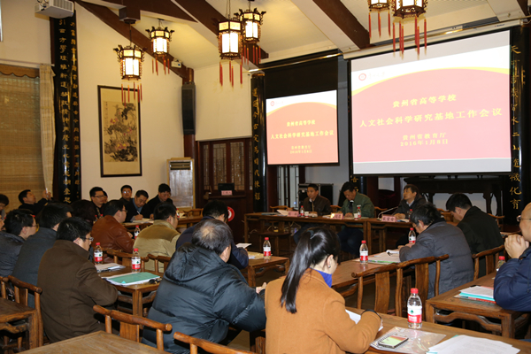 2016年1月8日,由贵州省教育厅主办、贵州大学哲学社会科学研究院承办、贵州大学中华传统文化与贵州地域文化研究中心协办的全省高校人文社科基地研讨会在贵州大学中华传统文化与贵州地域文化研究中心(中国文化书院)举行。贵州省教育厅党组成员、省委教育工委副书记、厅机关党委书记赵廷昌,贵州大学副校长、中国工程院院士宋宝安教授出席研讨会,向研讨会致词并发表讲话。来自省教育厅所属全省各高校人文社会科学研究基地负责人、各高校科研处处长、各高校相关学院院长,就研究基地相关工作展开研讨。贵州省教育厅社政处主持工作副处长赵祥主持会议。