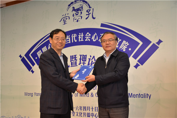 副省长何力与孔学堂文化传播中心党委书记、理事会理事长徐圻向院长、副院长、秘书长及学术顾问颁发了聘书。研究院设院长一名,副院长数名;秘书长一名;学术顾问若干名,由国内外阳明学、社会学、心理学等相关领域学者担任。