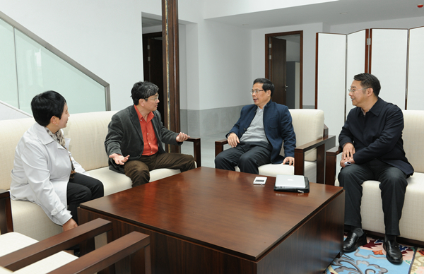 2016年4月12日上午,在贵州大学-孔学堂中华传统文化研究院考察期间,贵州大学校长郑强教授在贵阳孔学堂中华文化研修园“中国书院学会(孔学堂)国学研究中心”暨“岳麓书院(孔学堂)国学研究中心”亲切会见中国书院学会会长、湖南大学岳麓书院国学研究院院长朱汉民教授。贵州大学-孔学堂中华传统文化研究院院长陶渝苏教授,中国书院学会副会长、贵州大学中国文化书院常务副院长、贵州大学-孔学堂中华传统文化研究院副院长张清教授陪同会见。