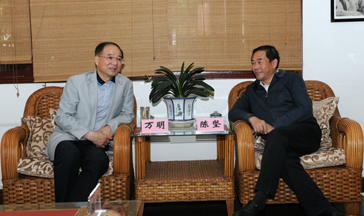 陈坚首先对万明一行表示欢迎。他说,贵州大学是贵州省唯一一所“211”重点大学,有百年的发展历史,学科门类齐全,为服务贵州地方经济建设做出了积极贡献。贵大人历来热情好客,欢迎兄弟院校的同仁们到贵州大学来为贵州大学的建设、发展传经送宝。