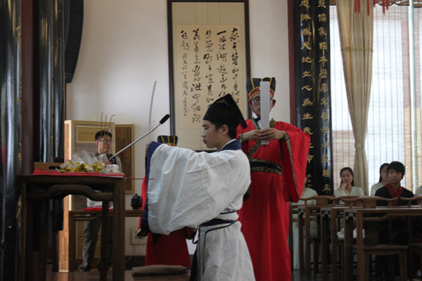 同时,他还希望“国学社”的同学们在重视礼仪活动的同时,不能忽略了学生的本职任务——学习,应藉助对圣人的体悟,好好做好学问,做到中国文化书院《学规》中所说的“尊德性与道问学之统一”;通过同学们的刻苦学习,带动学校学风的改善,为贵州文教事业的发展,乃至于整个民族、社会、国家的兴盛做出贡献。