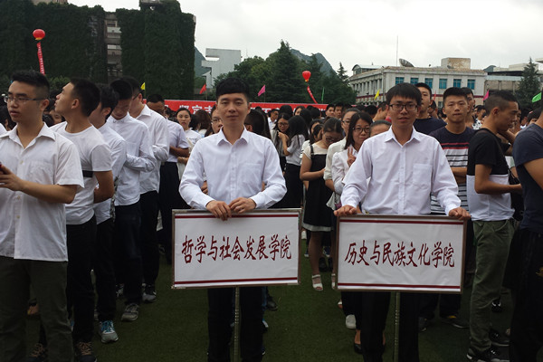 贵州大学历史与民族文化学院院长、中国文化书院常务副院长张清宣读学院授位名单。贵州大学历史与民族文化学院党委书记龙云湖,贵州大学历史与民族文化学院副院长何茂莉、罗同兵与每一位毕业生亲切握手表示祝贺。