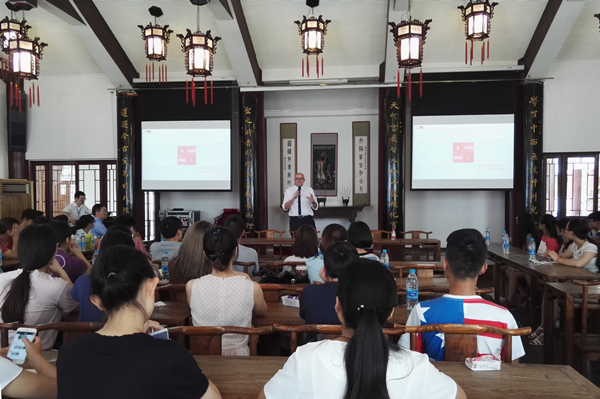 会谈后,Tim Steele副校长在中国文化书院勉学堂为我校外国语学院、管理学院及经济学院等学院的学生开展讲座,就中央兰开夏大学办学情况及留学项目作了介绍。