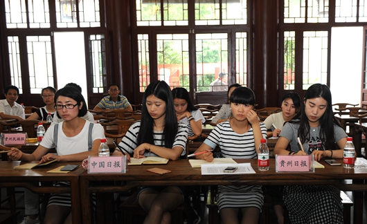 贵大新闻网讯(记者 丁龙 摄影 陈恒)7月25日上午,第九届中国东盟教育交流周媒体进贵大记者见面会在中国文化书院举行,来自《贵州日报》、《中国日报》、《贵阳日报》等八家媒体参加记者会。