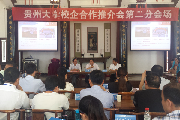 2016年7月26日下午,首届校地(企)合作推介会第二分会场会议在贵州大学中国文化书院举行。贵州大学人文社会科学类学院及科研机构——阳明学院、文学与传媒学院、哲学与社会发展学院、历史与民族文化学院、音乐学院、美术学院、法学院、经济学院、管理学院、公共管理学院、继续教育学院、中国文化书院、长征文化研究院、新农村发展研究院、东盟研究院等参加第二分会场推介活动。
