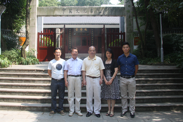 郭德勇副院长一行在中国文化书院办公室助理代少强带领下,先后参观了书院孔子圣像、贵州教育文化鼻祖——尹珍塑像、贵山书院石刻、励道楼、合一亭等处,听取有关中华优秀传统文化在贵州发展源远流长、贵州大学从贵山书院以来的历史沿革以及三代领导人对于学校建设与发展的关怀等情况介绍,并对中国悠久的传统文化表示由衷的向往。参访结束,宾主在书院大门外合影留念。
