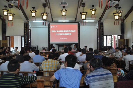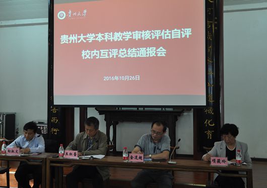 贵大新闻网讯(记者 刘文科 摄影 王顺松)为进一步发现问题、找出差距、总结经验、促进整改,10月26日下午,学校在中国文化书院勉学堂召开本科教学审核评估校内互评总结通报会,常务副校长王红蕾,副校长金道超、向淑文出席会议,学校相关职能部门、学院负责人参加会议。王红蕾主持会议。