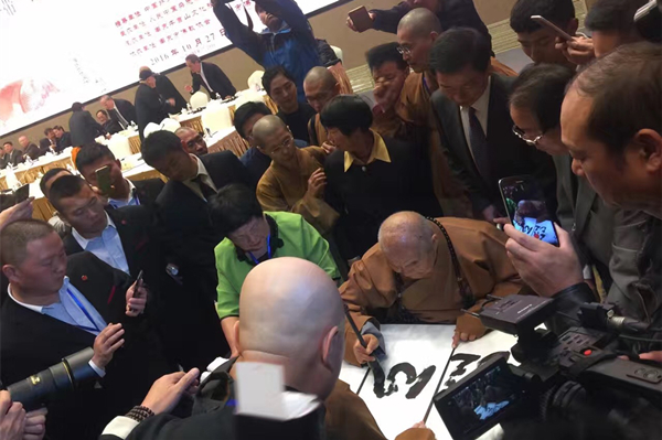 在开幕式现场,还举行了“一带一路”沿线国家代表书写《心经》仪式,来自30个国家和地区的学者、高僧、大使馆参赞、留学生代表共同用本国语言书写了《心经》。