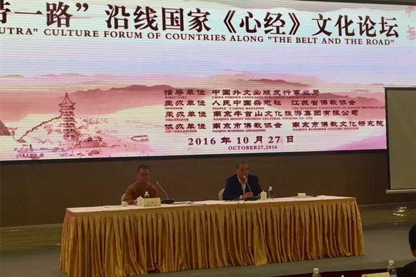 2016年10月27-28日,由《人民中国》杂志社和江苏省佛教协会主办、南京佛教协会和南京市佛教文化研究院协办的首届“一带一路”沿线国家《心经》文化论坛在江苏南京牛首山召开。来自“一带一路”沿线30多个国家和地区的200余位高僧大德、专家学者、领使馆官员以及海外留学生代表参加了论坛。贵州大学历史与民族文化学院(中国文化书院)黄诚教授受邀出席论坛。