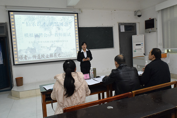 为做好我院大学生就业指导工作,进一步增强学生应聘面试能力,提升就业竞争力。11月6日,历史与民族文化学院首届“伯乐识才·鸿鹄展志”模拟应聘大赛在博学楼顺利举行。本次活动由贵州大学历史与民族文化学院团委主办,历史与民族文化学院学生会承办,贵阳银行云岩区分行赞助。大赛邀请了历史与民族文化学院夏保国教授、吴倩华副教授、闫平凡副教授、栾成斌老师、贵阳银行云岩区分行副行长闫行长一行3人、贵州省烟草专卖局人事处劳动关系管理员徐江及学院三名优秀研究生担任嘉宾评委。