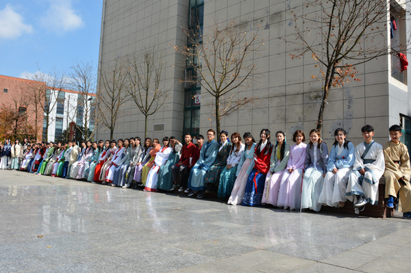 为让更多的同学了解中国传统服饰文化,推动汉服现代化变革,欣赏中国传统文化之美,2016年11月20日,贵州大学学生古风社团“汉风府”举行弘扬中华优秀传统文化、增强传统服饰文化自信的汉服校园行活动。