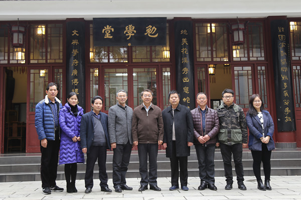 参观结束,宾主在书院勉学堂前合影留念。湖南农业大学客人对中国传统文化教育通过“志道据德、依仁游艺”全面育人的基本理念和通过琴棋书画陶冶情操、提升人格的基本主张,对先师孔子一生致力于仁爱与教育事业的艰辛历程、王阳明在贵州“龙场悟道”对于儒学文化发展的重要意义,对贵州教育文化事业及贵州大学的历史文化积淀与文化发展成就留下深刻印象。
