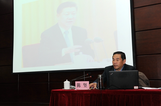 陈坚从深化对讲话重要意义的认识、认清意识形态领域形势、守好高校意识形态阵地、共青团应成为积极的实践者四个方面进行讲解。他说,要努力开创我国高教事业的发展新局面,扎实办好中国特色社会主义高校。他表示,解决高校意识形态领域问题的要义是敢于正视、不回避问题,要以发展着的马克思主义构筑青年的思想基础,重视以互联网为代表的现代科学技术在青年工作中的应用,加强对广大青年的教育引导。他强调,高校思想政治工作要因事而化、因时而进、因势而新,要遵循思想政治工作规律,遵循教书育人规律,遵循学生成长规律,不断提高工作能力和水平。他号召全体学员要强调四个意识,坚定改革奋进。
