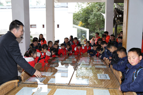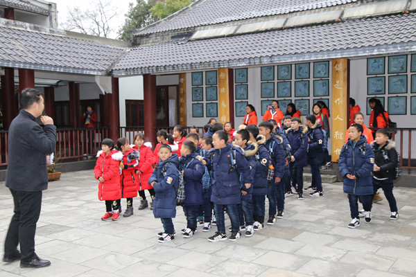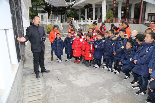 2016年12月23日上午,在贵州大学学生工作处师生事务服务中心和贵阳明彻助学中心志愿者的带领下,来自贵州省遵义市桐梓县新站镇和林小学的三十余名山区孩子参观贵州大学中国文化书院。