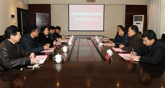 成和平一行就成都工业学院师生事务服务中心管理机制、人员安排、考核体系等具体问题与我校进行了交流探讨。