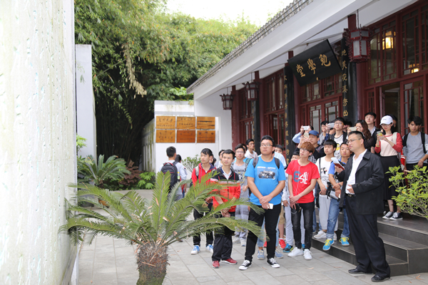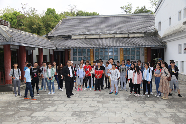 2017年4月20日,在贵州大学阳明学院《<论语>导读》、《<史记>导读》任课教师、贵州大学历史与民族文化学院(中国文化书院)邓国元博士及栾成斌博士带领下,阳明学院2016级90余名同学来到贵州大学中国文化书院学习并实地感受中华优秀传统文化的丰富内涵,详细了解和感受中国文化书院的历史沿革、陈列设施的历史典故、楹联书画的深厚底蕴、阳明文化的基本要点、贵州地域文化的特色等。