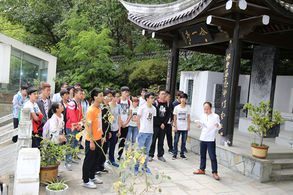 在阳明文化相关石刻及合一亭前,两位老师向同学们介绍王阳明龙场悟道的历史过程,介绍阳明“心即理、“良知之学”、“知行合一”哲学思想创新对儒家学说新高峰的重要意义与当代价值,介绍中国传统文化“天人合一”、“道器合一”、“身心合一”、“知行合一”的传统思想与文化理念及其对现代发展的重要启示。