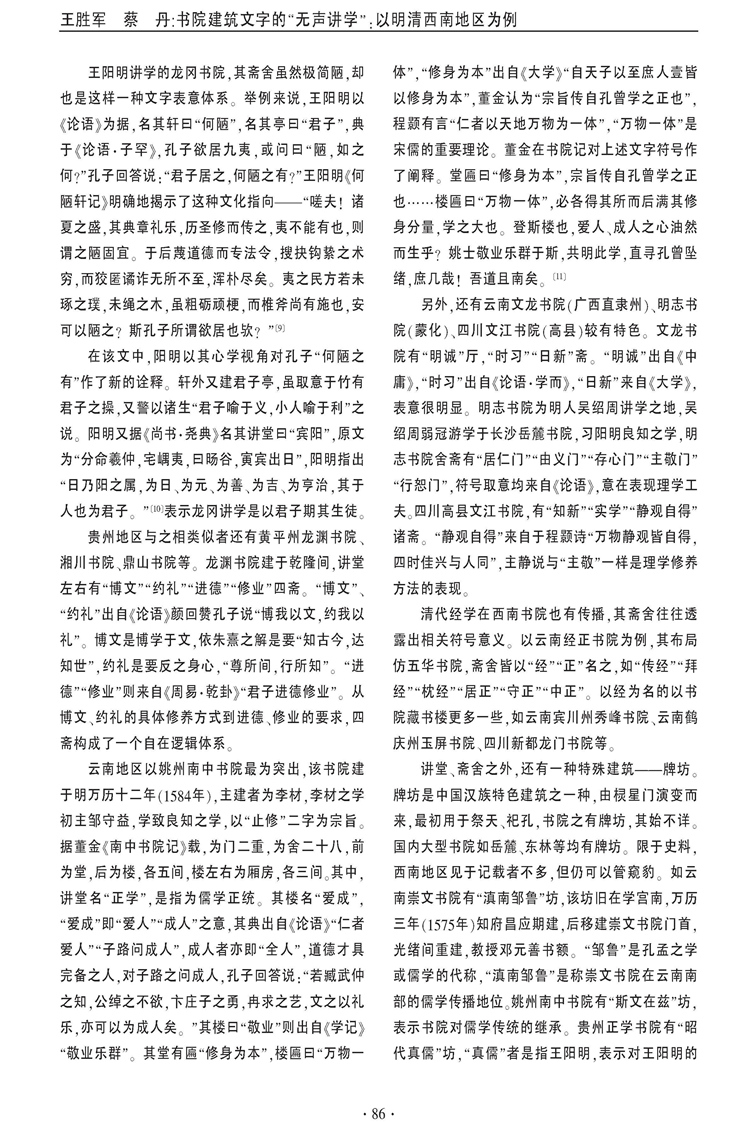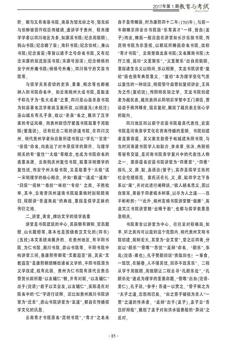 2017年第1期《教育与考试》刊载贵州大学历史与民族文化学院(中国文化书院)王胜军副教授等论文“书院建筑文字的‘无声讲学’:以明清西南地区为例”。全文如下: