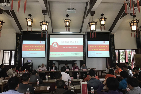 贵大新闻网讯(文字/图片 岳莹)为充分展示学校的办学实力和办学特色,提升学校的社会影响和办学声誉,增进社会各界对贵州大学的认识和了解,进一步吸引优质生源,5月27日,我校2017年招生宣传校园开放日推介会在文化书院举行。副校长向淑文、各学院副书记、省内部分中学的校领导及我校相关部门负责人参加推介会。会议由招生就业处处长惠淑林主持。