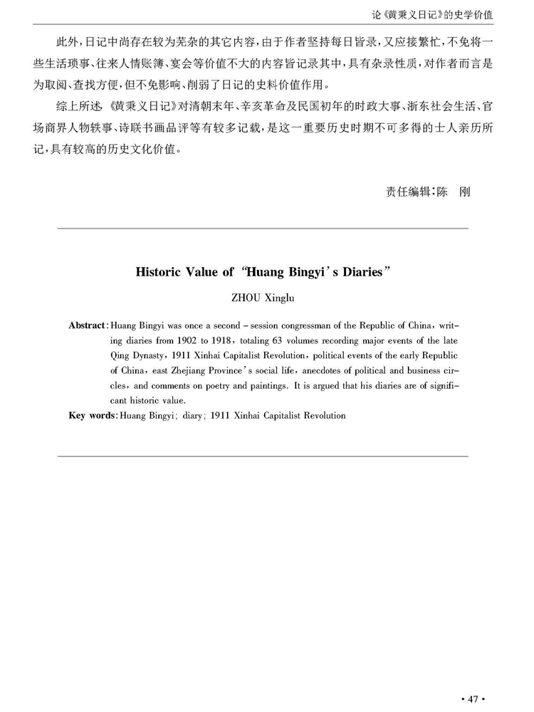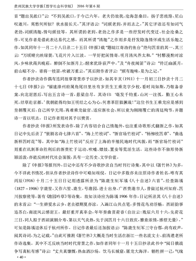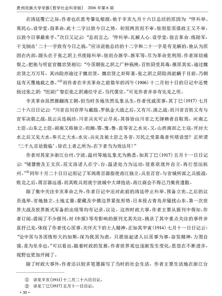 《贵州民族大学学报》(哲学社会科学版)2016年第6期刊载贵州大学历史与民族文化学院(中国文化书院)副教授、贵州大学-孔学堂中华传统文化研究院研究员周兴禄“论《黄秉义日记》的史学价值”一文。全文如下: