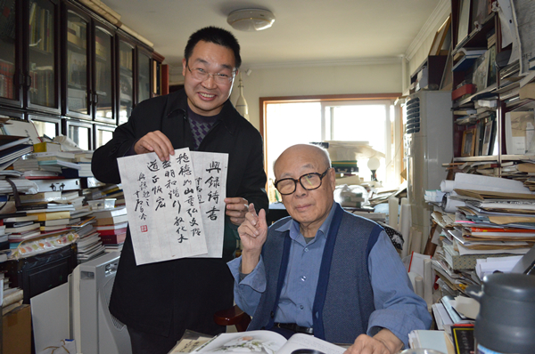 周兴禄副教授与其博士后导师、著名书法家欧阳中石先生在一起