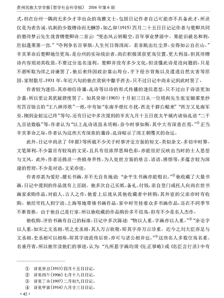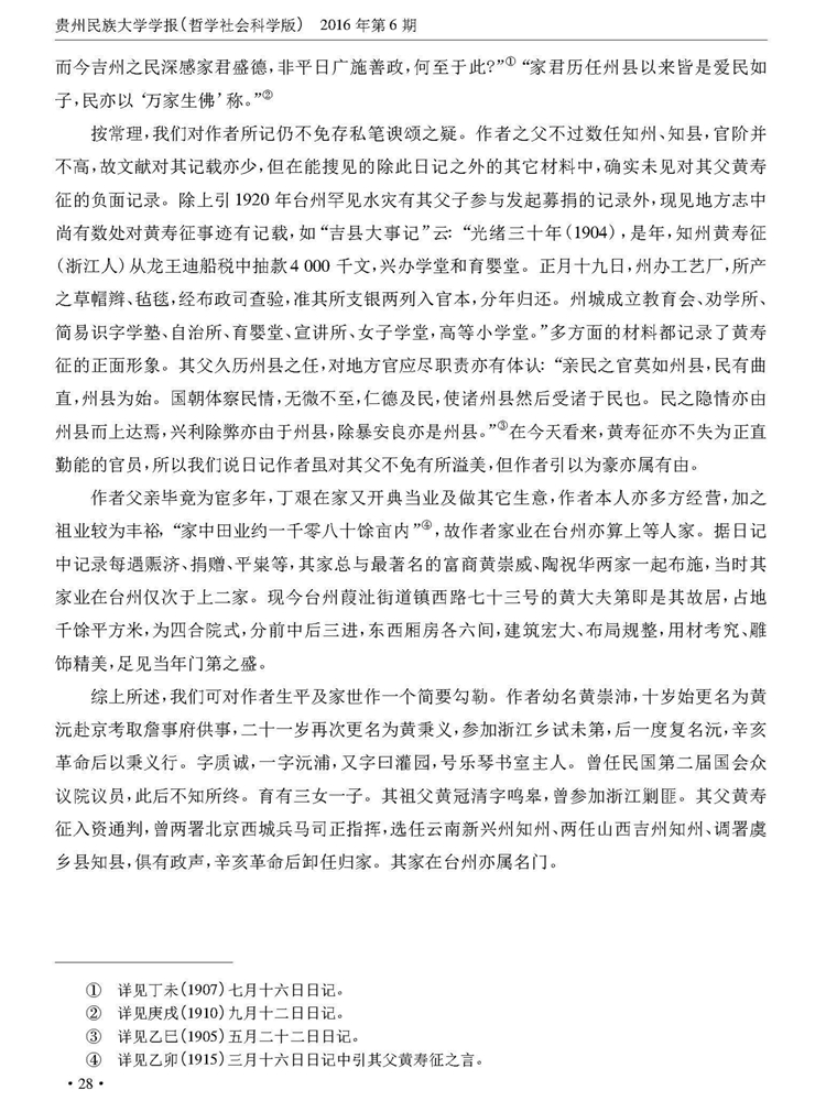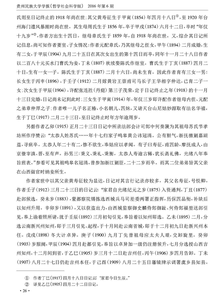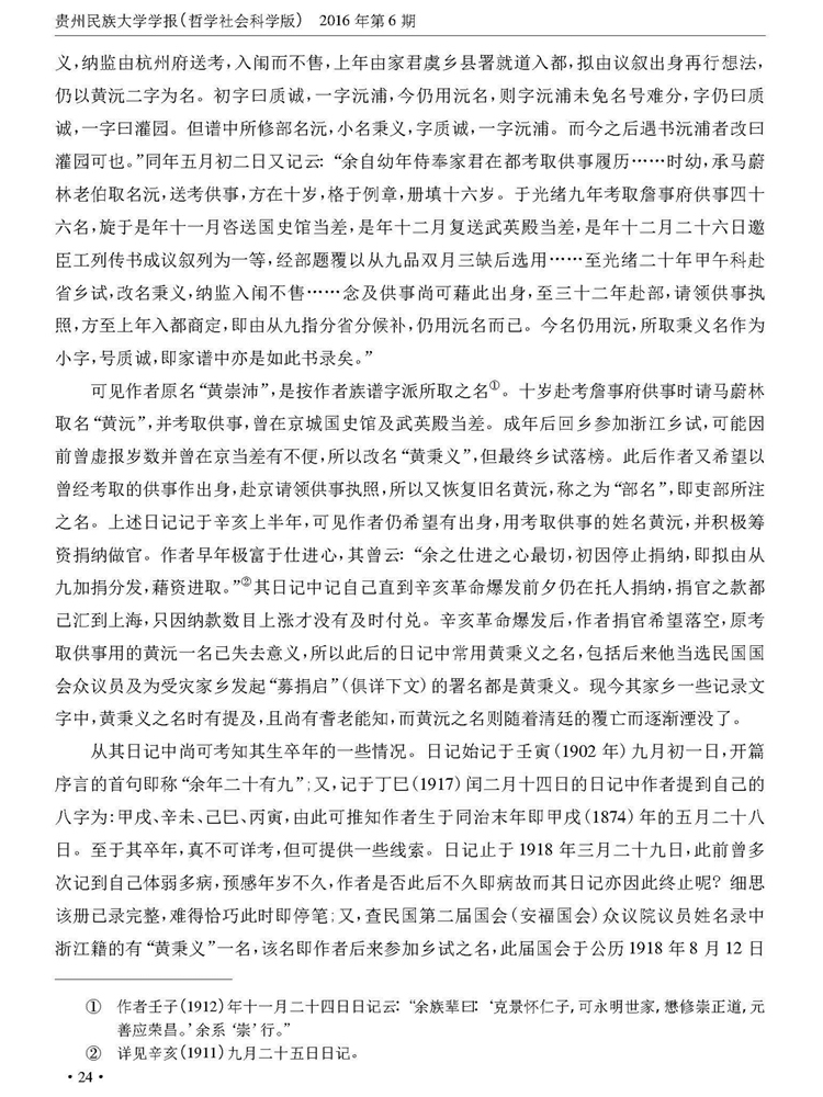 《贵州民族大学学报》(哲学社会科学版)2016年第6期刊载贵州大学历史与民族文化学院(中国文化书院)副教授、贵州大学-孔学堂中华传统文化研究院研究员周兴禄“论《黄秉义日记》的史学价值”一文。全文如下: