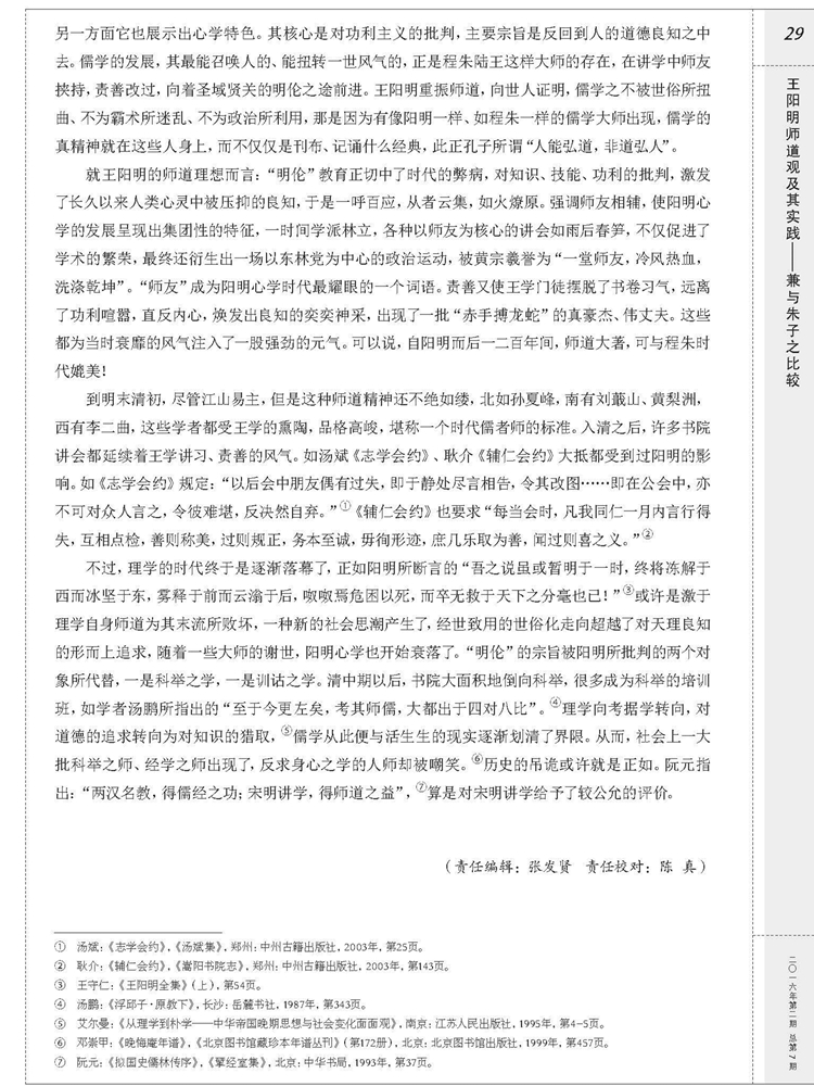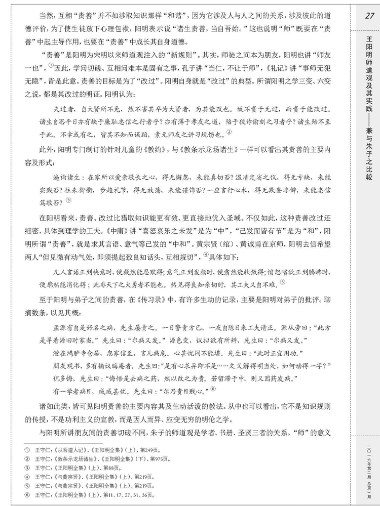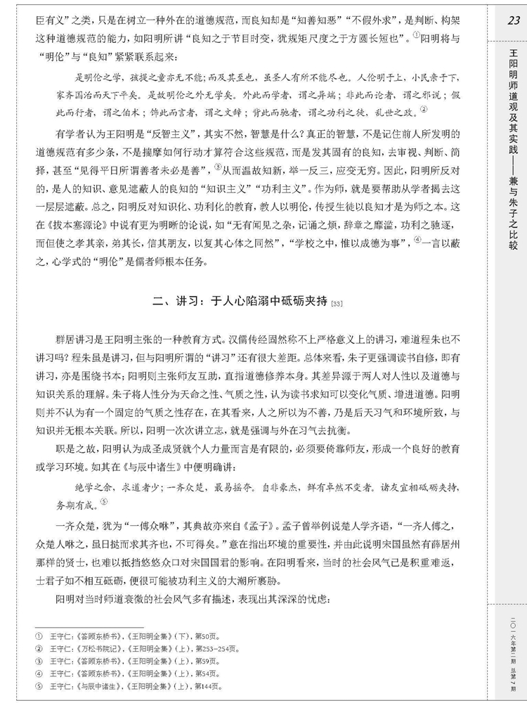 2016年第二期《孔学堂》杂志刊载贵州大学中国文化书院副教授王胜军博士“阳明学”研究中英文论文,题:王阳明师道观及其实践——兼与朱子之比较。中文全文如下: