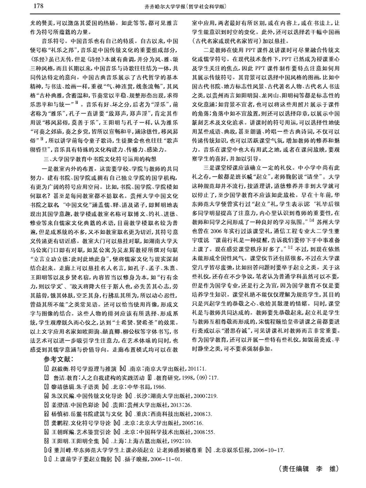 2017年4月《齐齐哈尔大学学报》(哲学社会科学版)刊载贵州大学中国文化书院副教授王胜军博士等论文,题:古代书院文化符号的运用对现代大学国学教育的启示。全文如下: