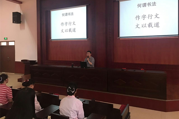在贵州省人民医院护士学校,周兴禄副教授作了“书法学习与国学修养”的讲座。周兴禄认为,书法是艺术,更是国学,练习书法是学习国学的重要途径;书法的特色是“作字行文、文以载道”,是讲求作字技法及行文、载道的学问,而书法家应是具有高超的笔墨技巧又通史能文、富有思想的文人。讲座中,周兴禄还对中专同学们关心的学书法如何入门、选帖及如何学习与之相关的文史知识等方面作了深入浅出的讲解。