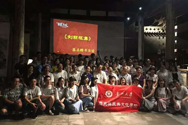 晚上,贵州大学师生们与文物局干部相聚北营庙,举行联谊活动。《刘荫枢集》作者闫平凡教授签名赠书。大家载歌载舞,欢笑连连。