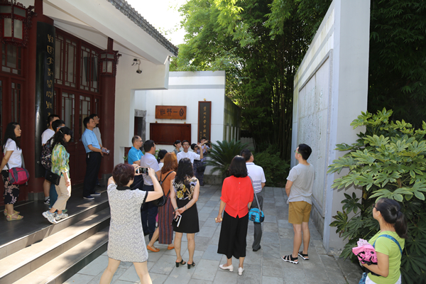 2017年7月26日上午,在贵州大学校医院院长张宗奎带领下,湖南师范大学校医院、长沙理工大学校医院及贵州大学校医院党支部一行26人来到贵州大学中国文化书院参观。历史与民族文化学院(中国文化书院)办公室副主任马益英、办公室研究生助理及办公室实习生等工作人员在书院大门前迎接各位医务工作者,带领大家参观并介绍书院各处设施与陈列及其文化内涵。