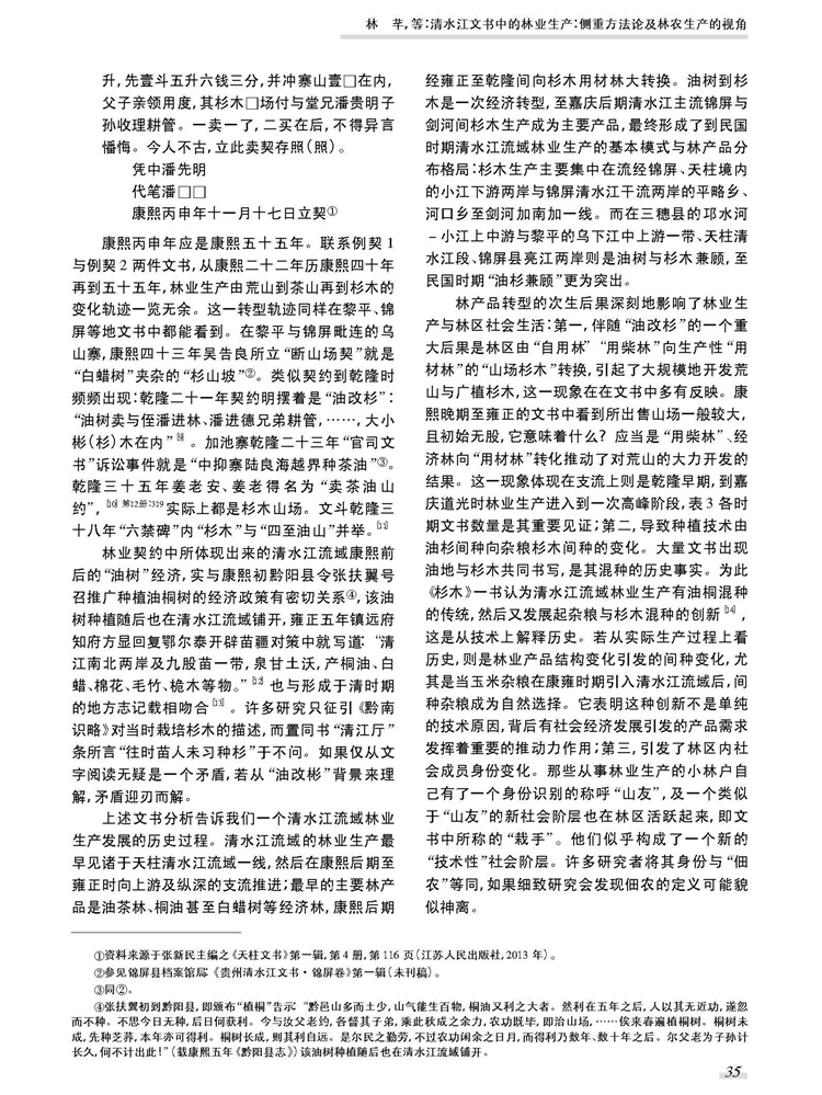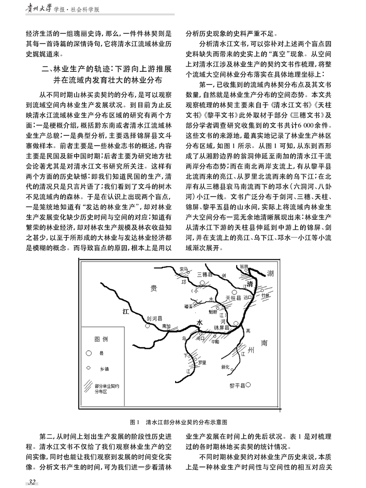 2017年6月第35卷第3期《贵州大学学报》(社会科学版)刊载贵州大学历史与民族文化学院(中国文化书院、阳明文化研究院)贵州大学清水江学研究中心研究员、历史系林芊教授及硕士生杨春华“清水江学”研究论文,题“清水江文书中的林业生产:侧重方法论及林农生产的视角——清至民国西南内地边疆侗苗地区土地关系研究之一”。全文如下: