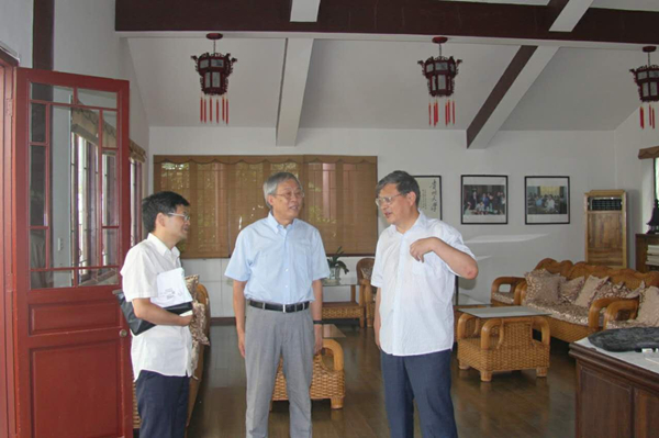 在书院大门口,面对著名哲学家、国家图书馆原馆长任继愈先生题写的“中国文化书院”匾额,张新民教授向客人详细介绍了书院的创建过程及任老题词由来,并且愉快地回忆和分享了时任贵州省副省长马文骏支持创办书院和任老题词的相关历史细节,宾主双方不时发出会心的笑容。王林教授对张新民教授创建书院的“远见卓识”表示高度钦佩和赞赏,并高度盛赞当初支持创办书院的省校领导,认为是对贵州文化事业做出的巨大贡献。