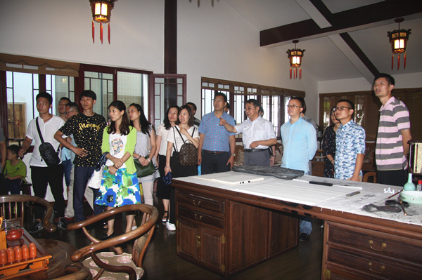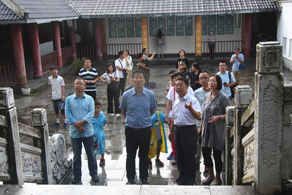 在书院前院,鲍贤杰院长等客人一行拜读了中国文化书院创院荣誉院长张新民教授所拟“中国文化书院学规”及“中国文化书院条规”,了解其所蕴含的“学问与生命之统一,知识与人格之统一,理论与实践之统一”的办学与科研理念、进德修业与做人为己行为规范。随后,绍兴客人又参观考察了书院开展学术交流、传道解惑的庄严讲堂——勉学堂,详细了解励道楼、游艺轩、琴轩、陈列室、合一亭、涵远读书楼等处楹联匾额、场所名称及其传统文化内涵,对书院各处传统文化符号载体、丰富的古代文化典籍收藏与利用、书院学者的学术研究、传统文化与学术交流、学术研究连续辑刊《阳明学刊》及《人文世界》的编辑出版等赞誉有加。