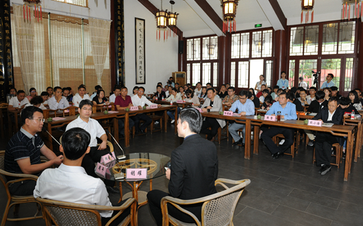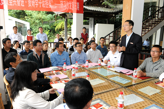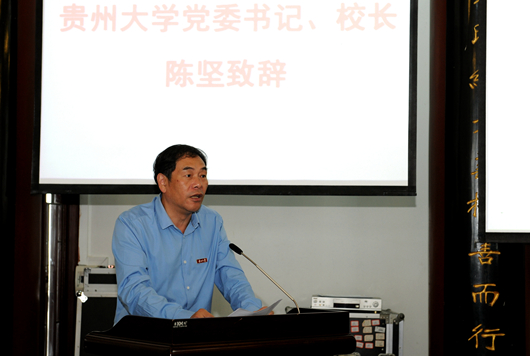 在中国文化书院勉学堂举行的交流会上,陈坚致辞。他表示,“贵州脱贫攻坚群英谱”选树宣传工作对示范带动全省广大干部群众决胜脱贫攻坚、同步全面小康具有十分重要的作用。他指出,近年来,我校高度重视脱贫攻坚工作,明确了“贴合贵州、结合特色、整合资源”的工作原则,通过党建扶贫、教育扶贫、产业扶贫、农校对接“四箭齐发”,打造了一大批精准扶贫产业,涌现了一大批扶贫工作先进个人,取得了较好的扶贫脱贫实效。他强调,决胜脱贫攻坚、同步全面小康是贵州全体党员干部肩负的政治责任和历史使命。今后,我校将充分利用多学科优势,进一步聚焦科技扶贫和产业扶贫,集聚一批学者,汇集一批成果,科研立足贵州,服务脱贫攻坚。