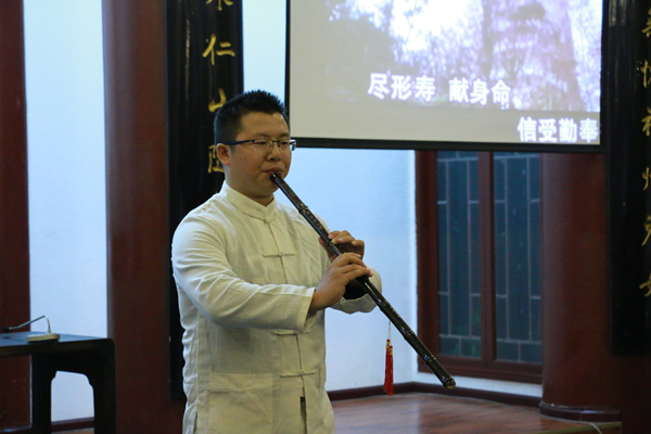 主持人代为宣读著名古琴家、溪山琴社顾问卫家理先生的贺辞。琴社社长晏忠涛发言,承诺“溪山琴社以尊师重德、正直为人、操缦崇派、琴道永存为宗旨,会竭力为我校广大古琴爱好者提供一个学习交流平台,传承古琴传统文化。”张连顺教授讲话,介绍了社团成立的缘起及古琴文化的内涵,向嘉宾赠送了卫家理先生的琴曲光碟并合影留念。溪山琴社成立仪式圆满完成。