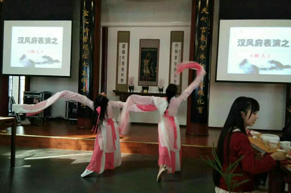 汉风府舞蹈表演《桃夭》结束后,主持人宣读了新一届管理干部名单。第六届社长李彩云做了就职报告:“感谢大家对我的支持与信赖。在今后的工作中,我会竭尽全力,时刻行使我的职责,明确责任分工,抓好各部门的工作,把茶道社发扬光大。”