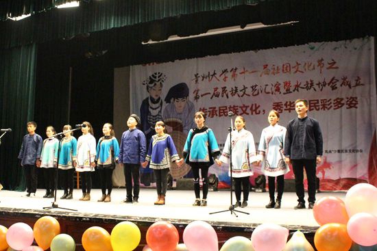 贵大新闻网讯(记者团 郑婷 实习记者 田一凡 报道|摄影丁秋瑜)11月25日晚,我校第一届民族文艺汇演暨水族协会成立晚会在北校区大礼堂举行。此次晚会由共青团贵州大学委员会、历史与民族文化学院主办,贵州大学水族文化研究协会承办。我校历史与民族文化学院党委书记李开学、贵州民族大学水族文化研究教授潘朝霖及相关人员参加此次晚会。