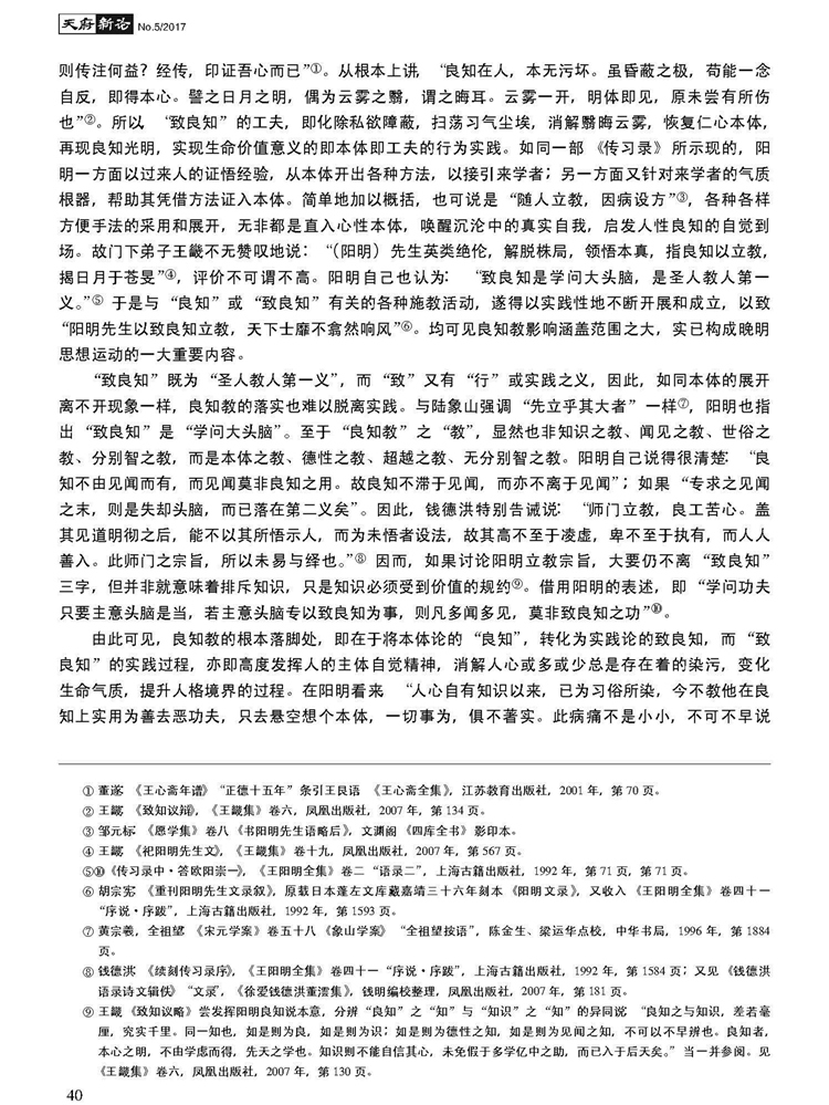 2017年第5期《天府新论》刊载贵州大学中国文化书院二级教授、荣誉院长张新民先生国家社科重大委托项目“阳明文化与现代国家治理研究”(编号:14@ZH054)、国家社科基金重点项目“阳明学诠释史研究”(编号:17AZX006)阶段性成果,题:德性生命的实践与价值世界的建构———论王阳明良知思想的四重结构。全文如下: