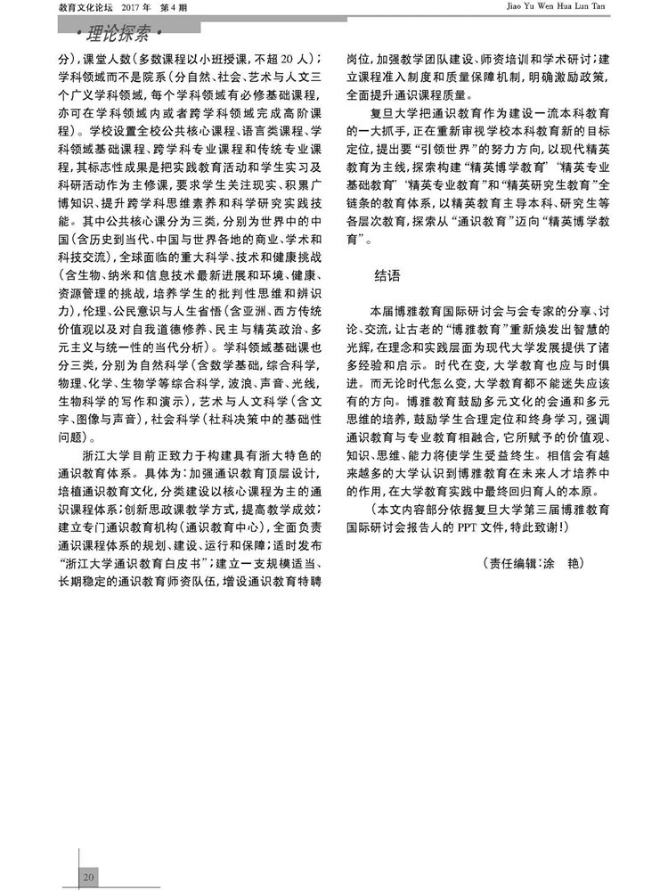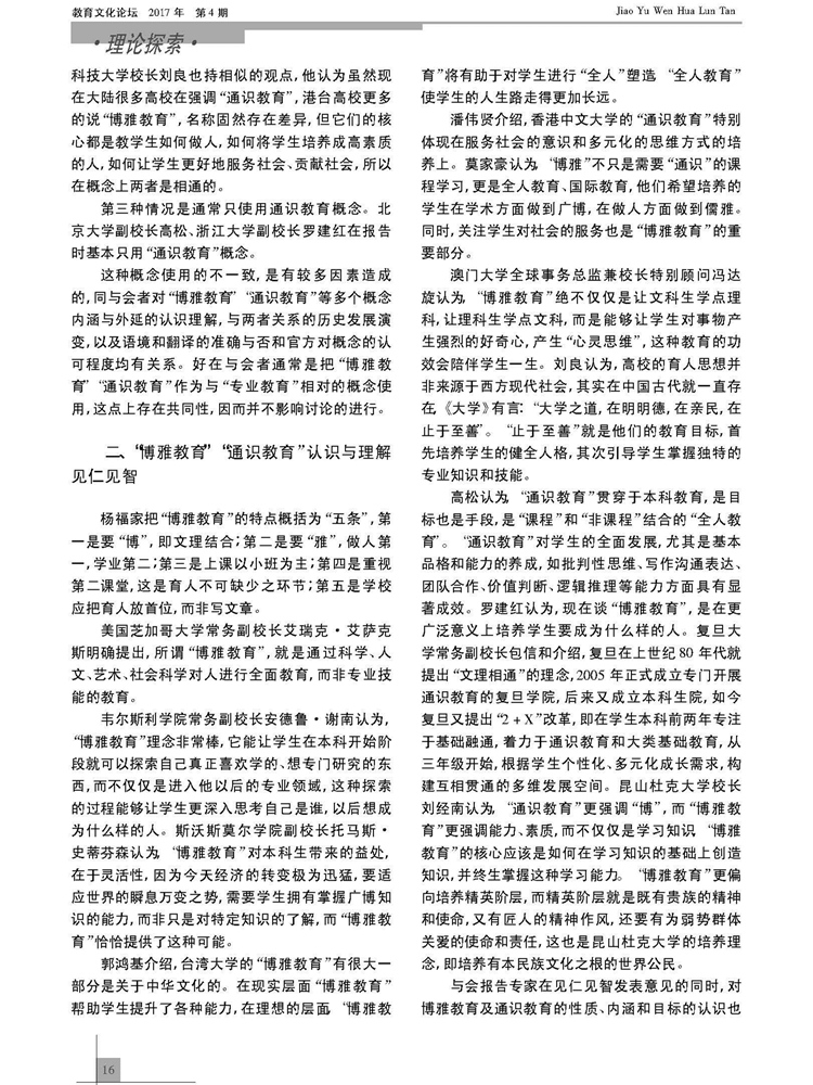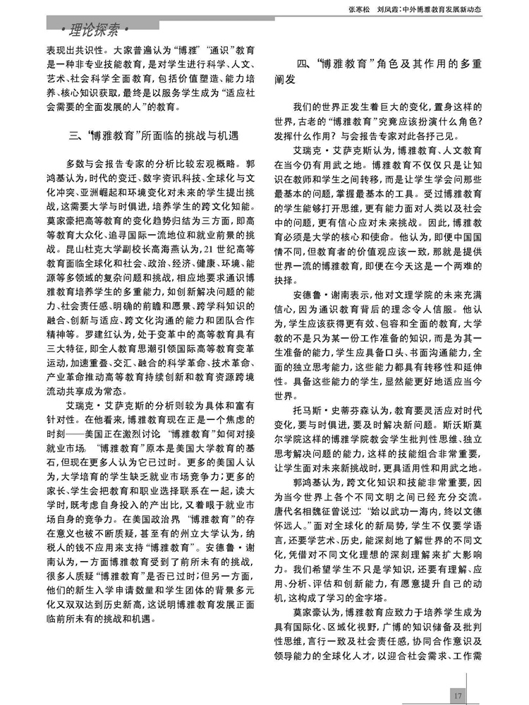 2017年4期《教育文化论坛》刊载贵州大学阳明学院、经济学院张寒松教授及原贵州大学历史与民族文化学院(中国文化书院)、现阳明学院刘凤霞副教授论文,题:中外博雅教育发展新动态——第三届博雅教育国际研讨会观点综述。